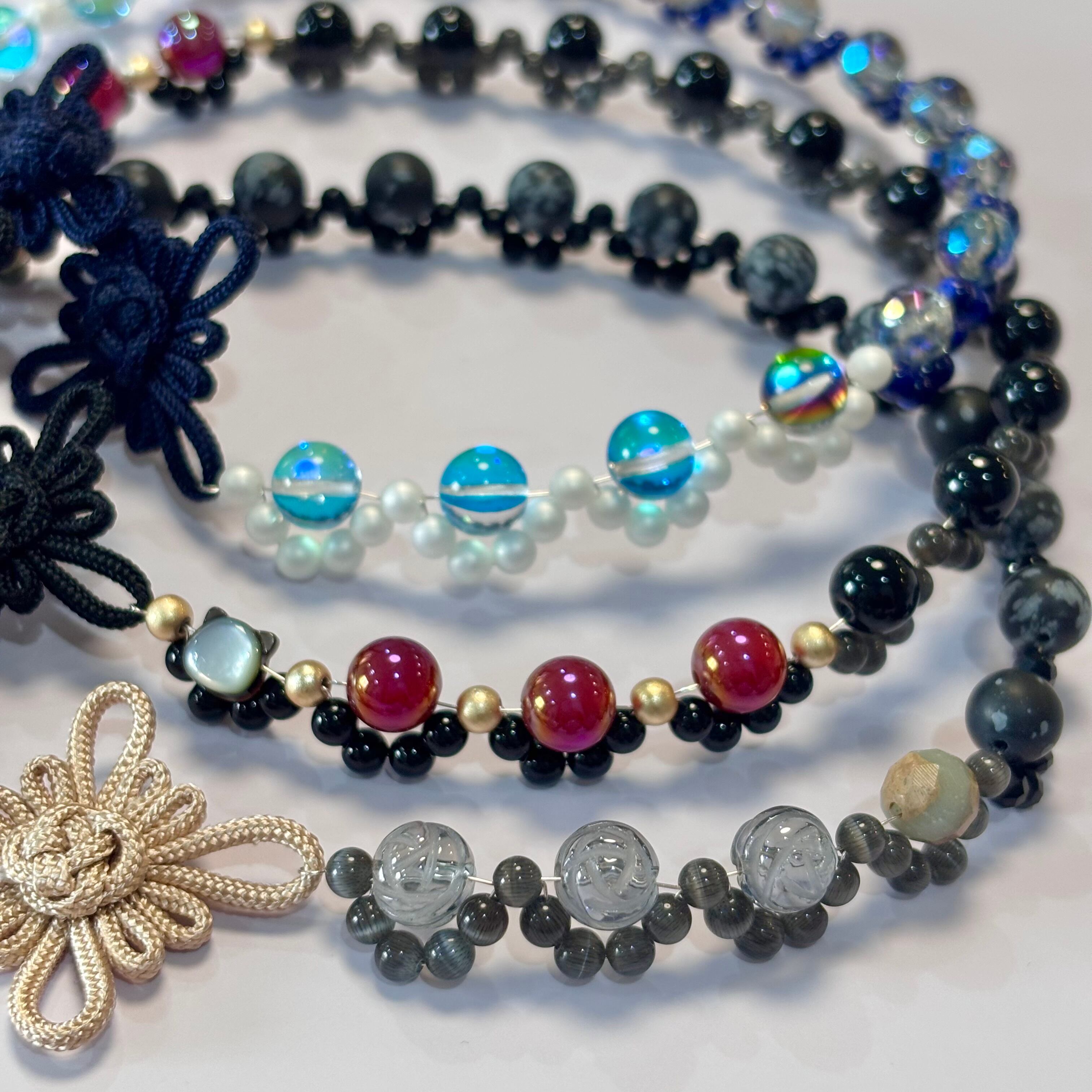 ビーズの厚みがあるため、ご自身の首回りのサイズ+1〜2cmがおすすめです。