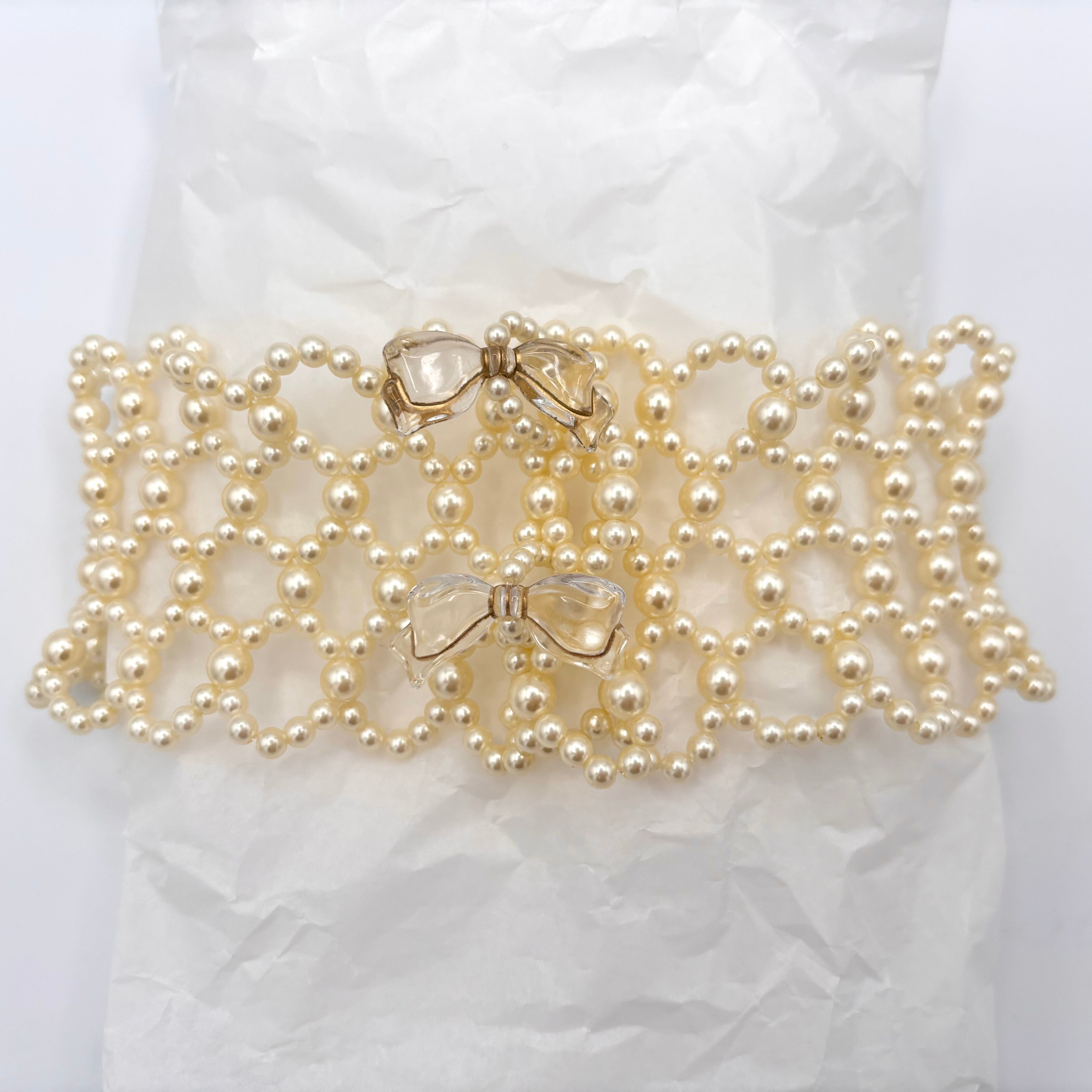 留め具としてリボン型のアクリルビーズを使用しています。
