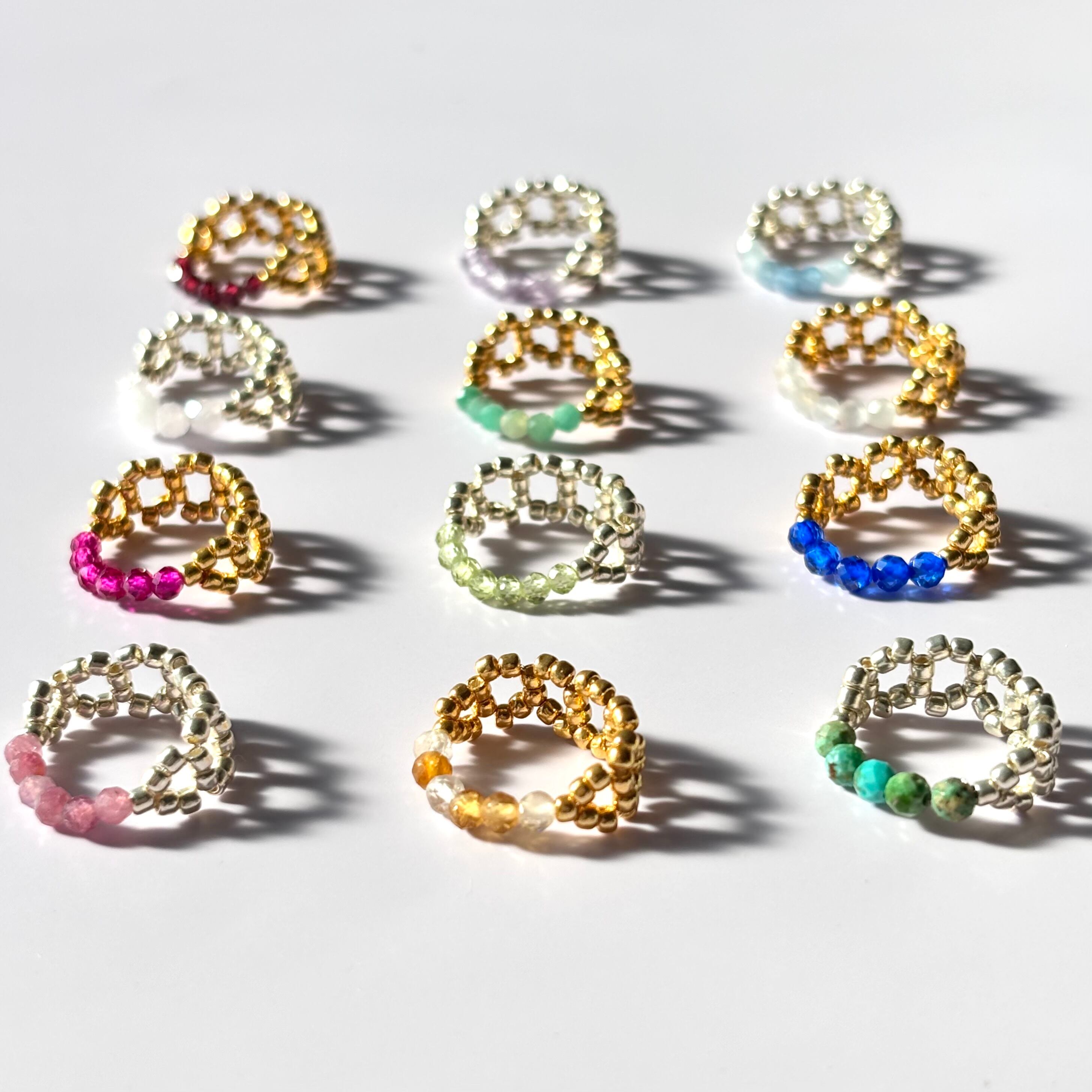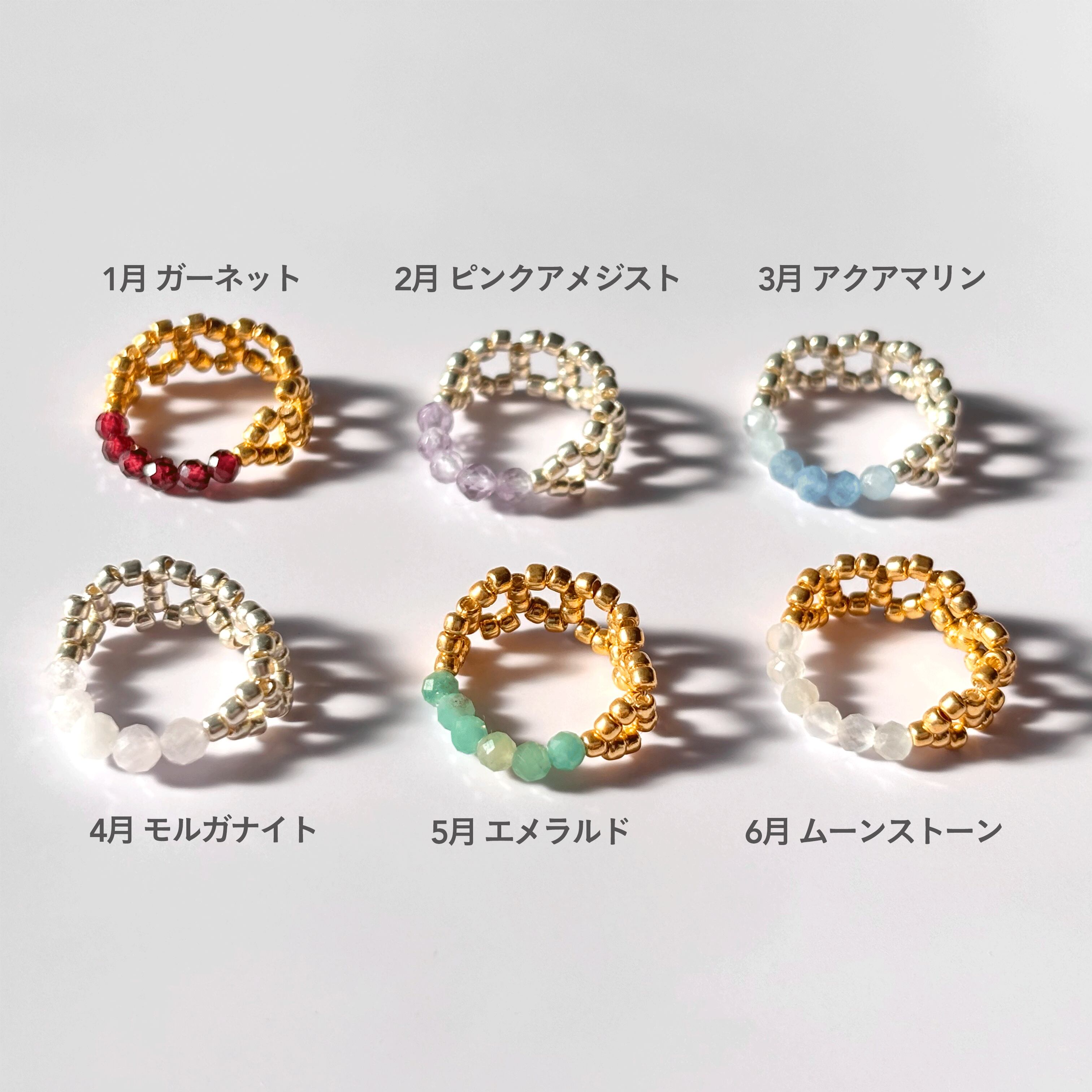 12ヶ月の誕生石で仕立てた、小さな指輪をご用意しました。