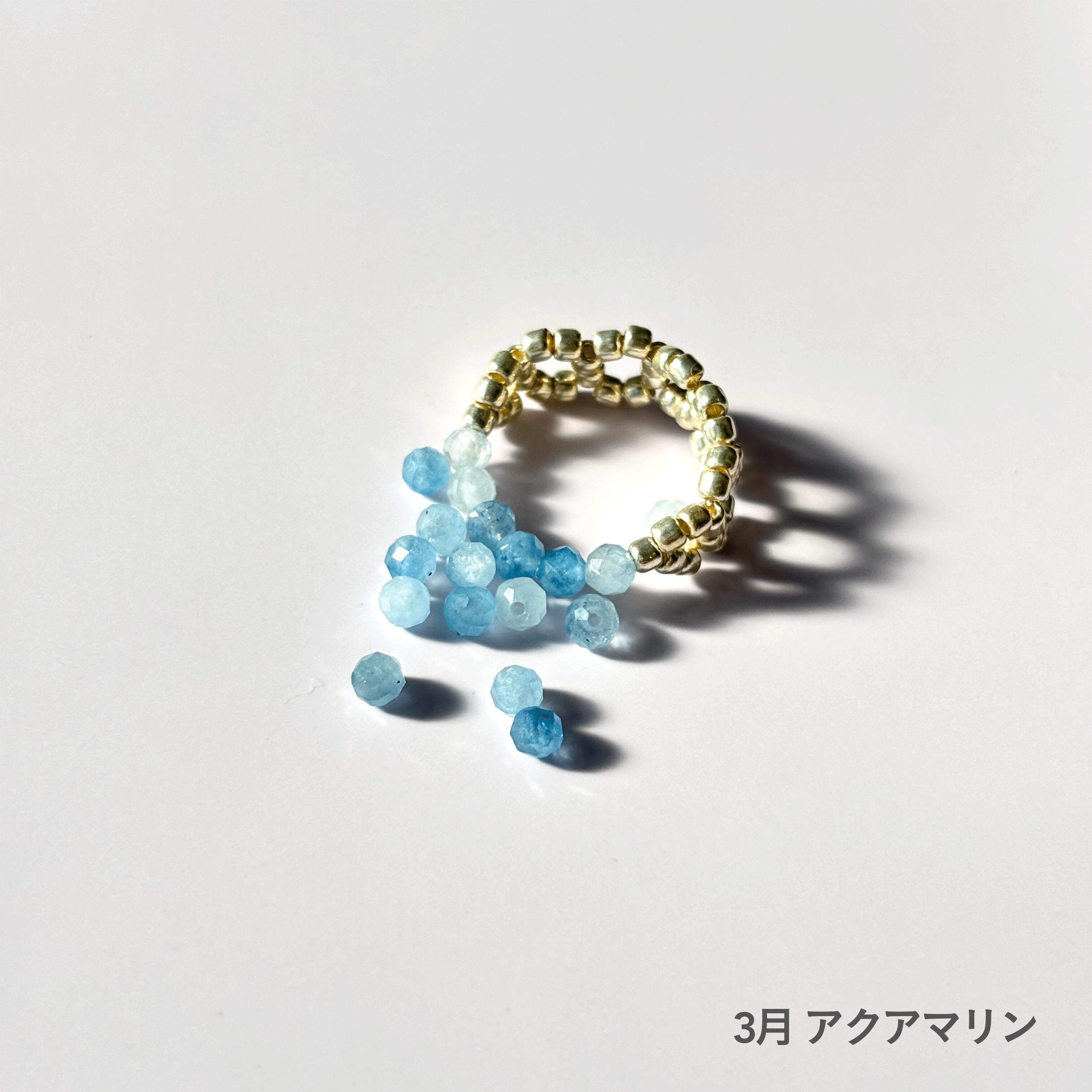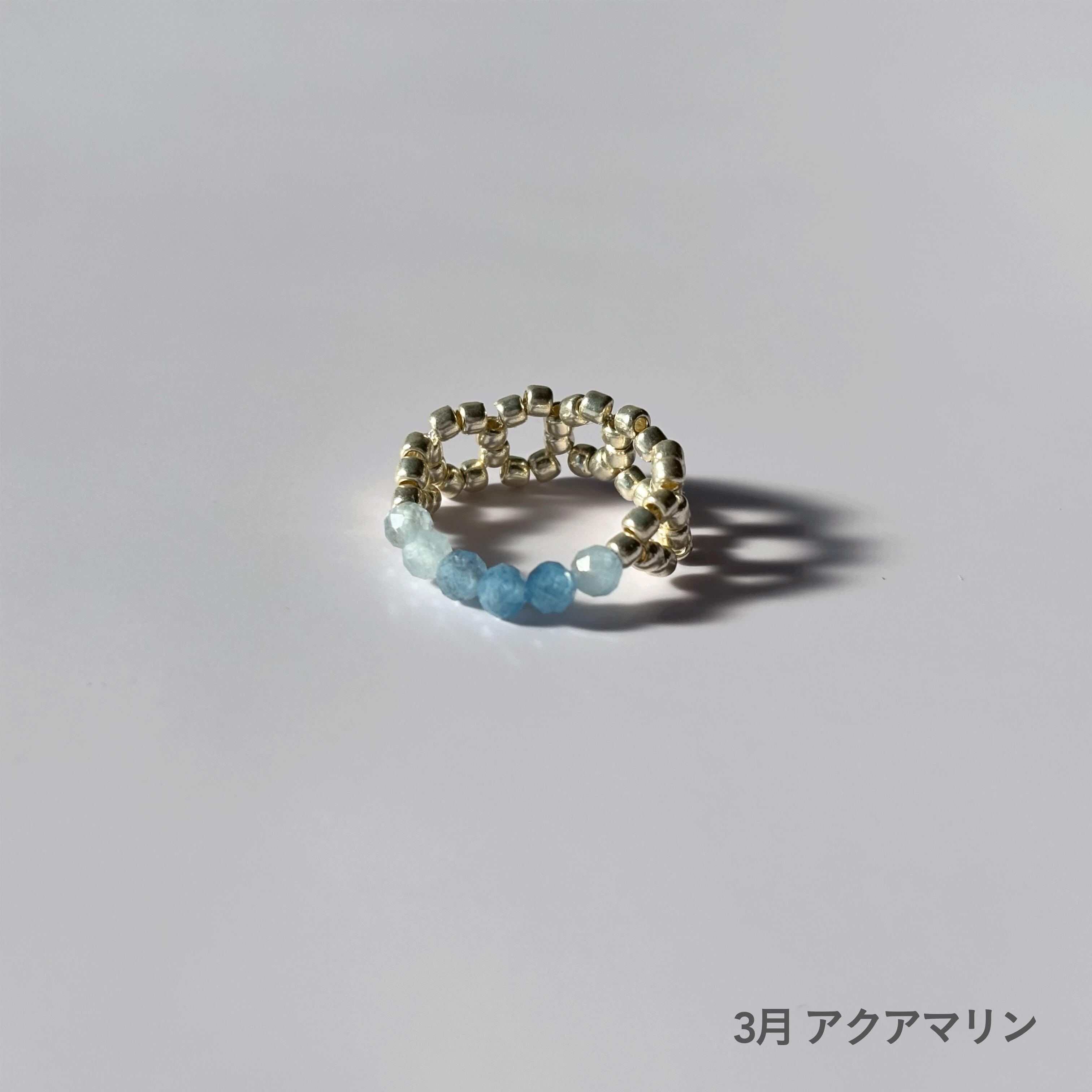 3月 アクアマリン:「勇敢」「聡明」「幸福」などを石言葉に持ち、身につけると穏やかな癒しを与えてくれるとされます。人間関係に愛と調和をもたらします。