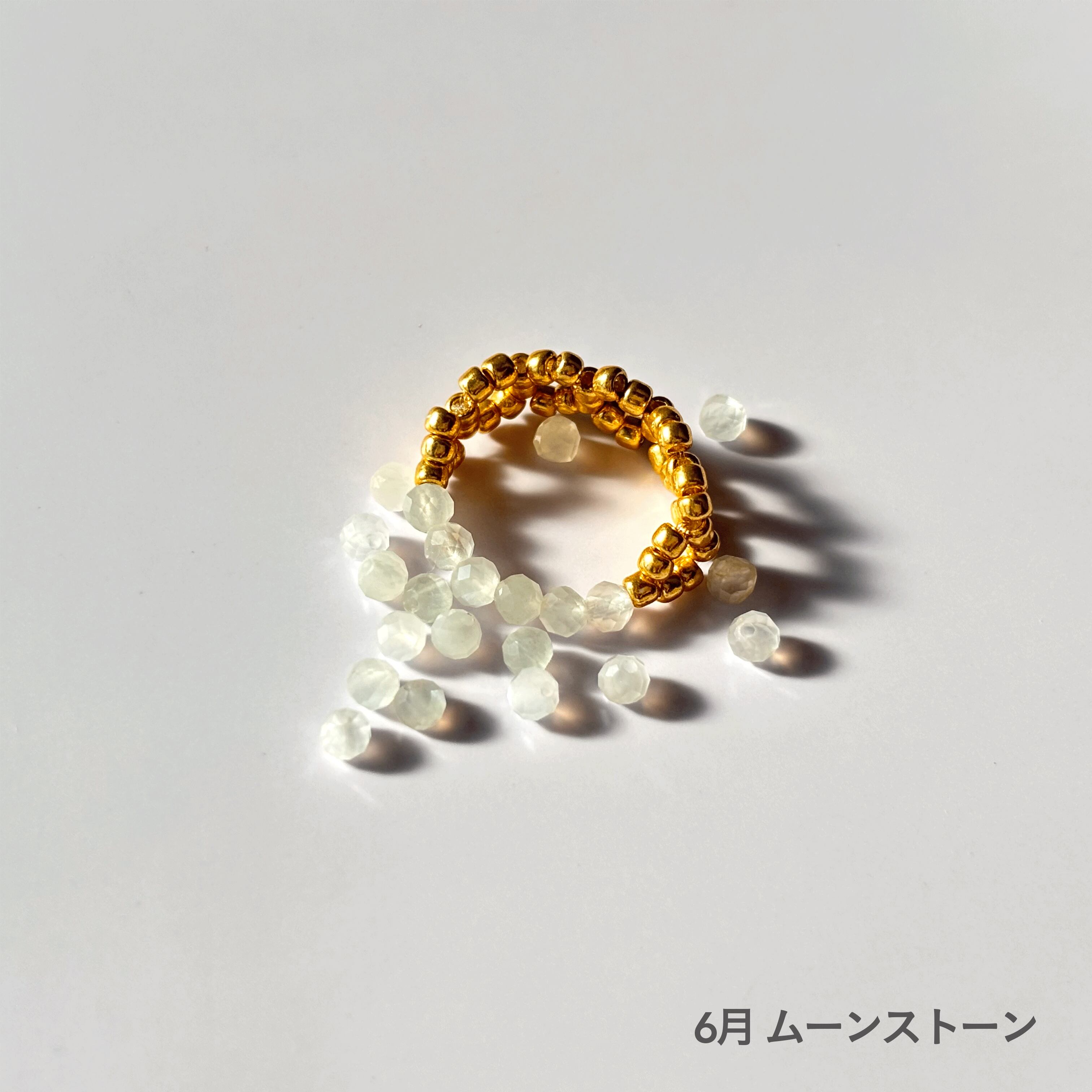 6月 ムーンストーン:石言葉は「健康」「幸運」「恋の予感」など。月を連想させる優しい光の石です。体調を整えたり、幸運と出会うきっかけをもたらしてくれます。