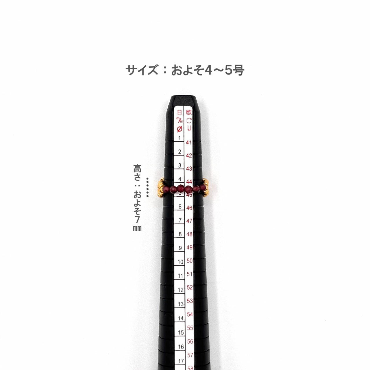 ピンキーリングやファランジリングにもお使いいただける、4〜5号の小ぶりなサイズ感です。