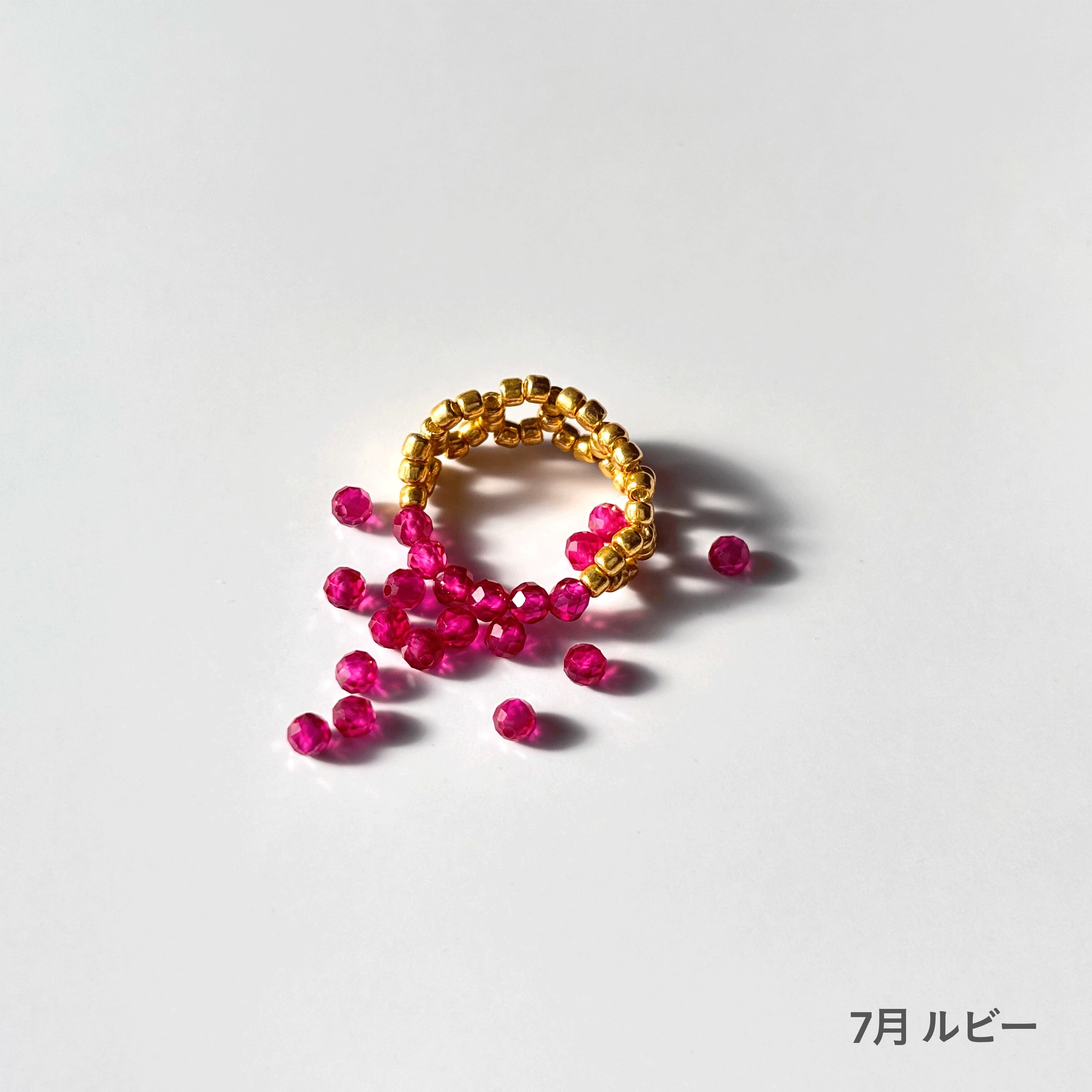 7月 ルビー(合成石):「愛」「情熱」「勇気」「成功」などを石言葉に持ち、持ち主の生命力を高めてくれます。魅力や美しさを引き出してくれるといわれています。元気を出したい時の後押しにも。