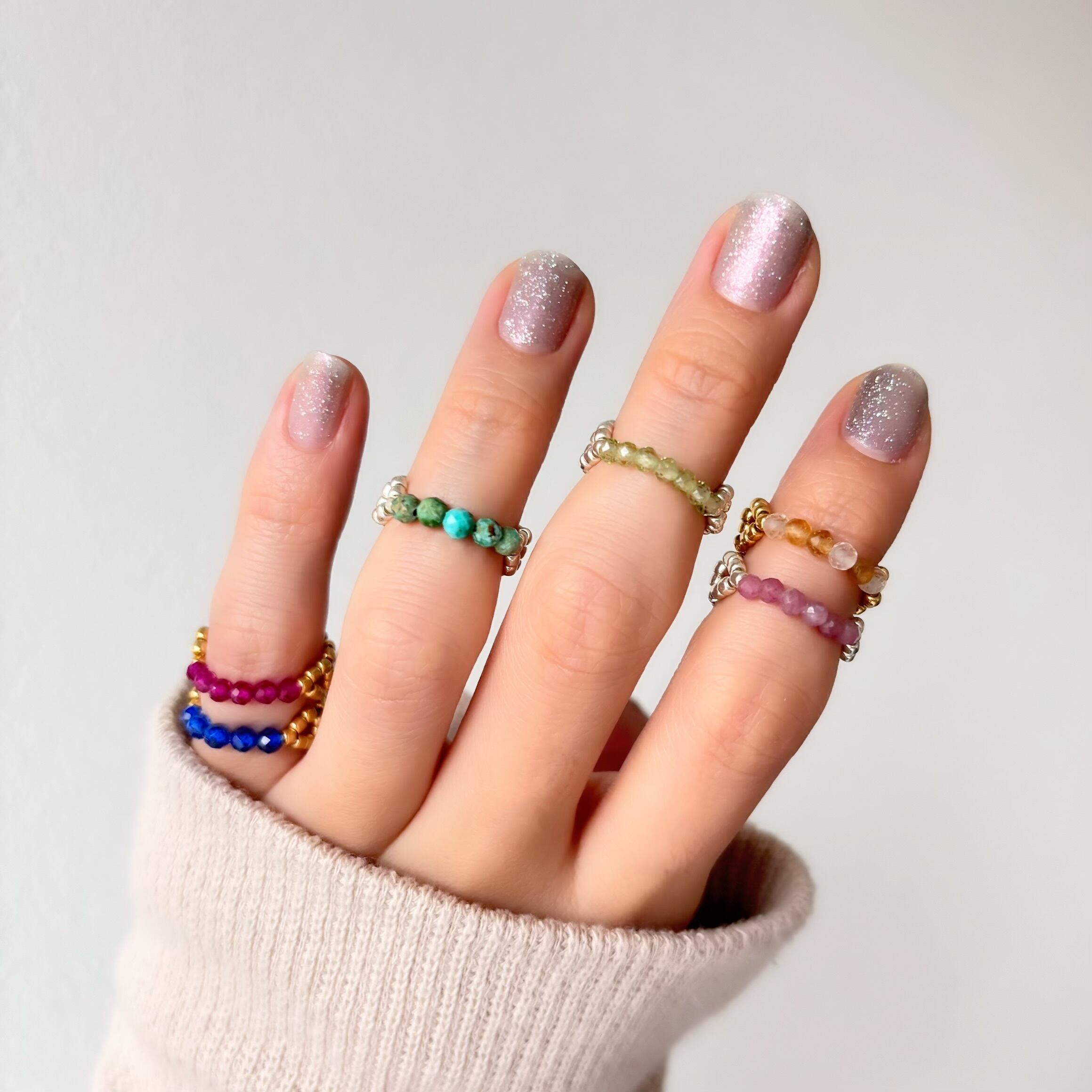 ピンキーリングやファランジリングにもお使いいただける、4〜5号の小ぶりなサイズ感です。