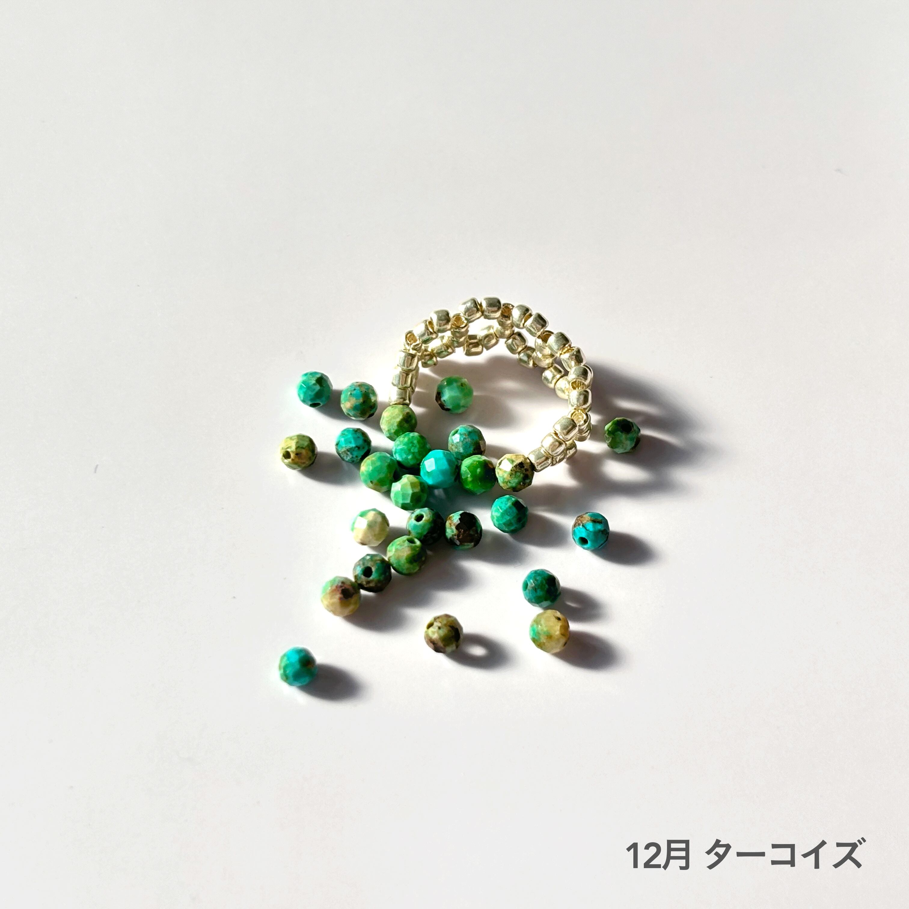 12月 ターコイズ:石言葉は「成功」「健康」「幸運」「自由」など。古くから魔除けの石として知られ、持ち主を危険から守り、夢や目標達成をサポートする力があるとされています。
