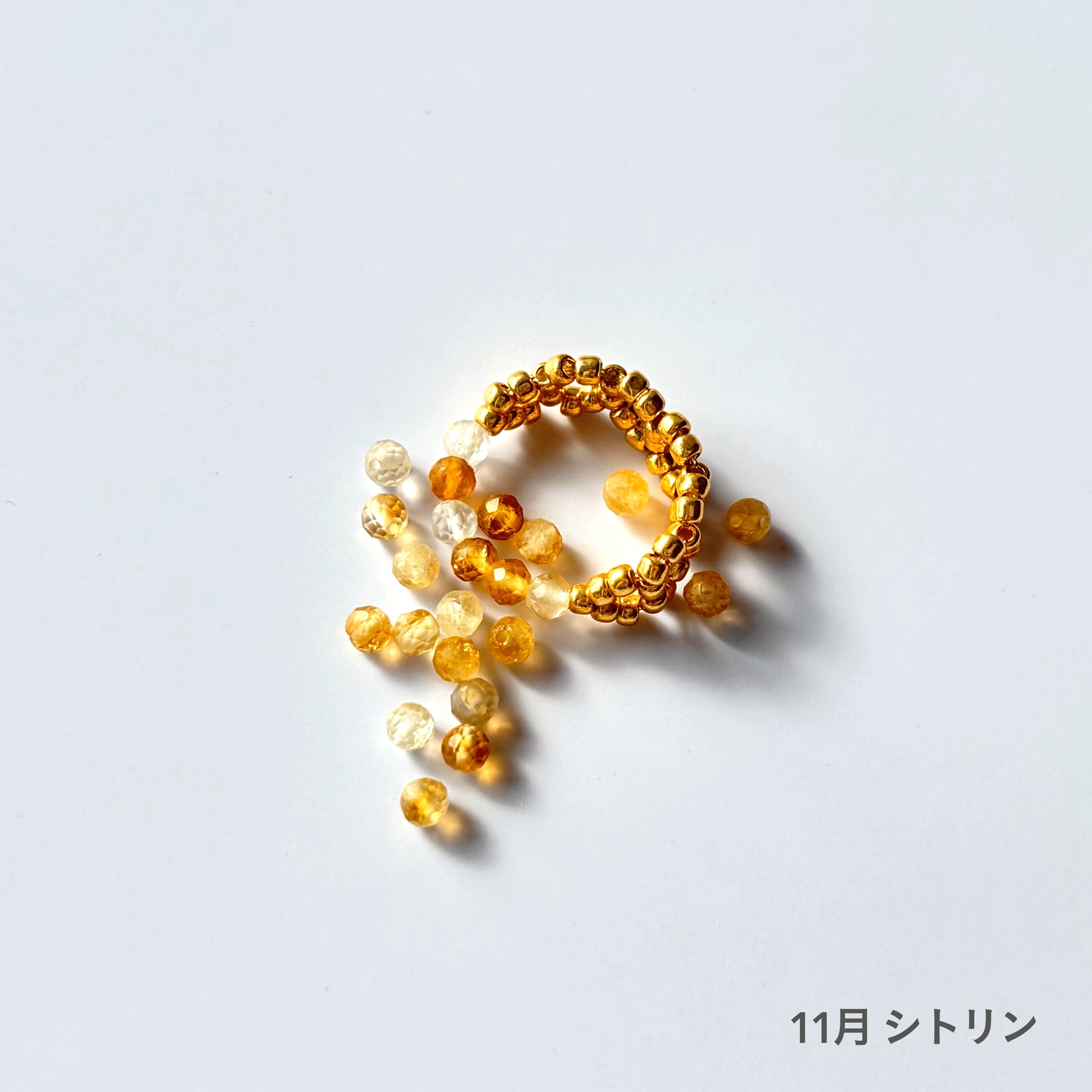 11月 シトリン:「友愛」「希望」「成功」「富」「幸福」などを石言葉に持ちます。太陽のような黄金色で、持つ人に前向きな気持ちや活力を与えてくれ、金運や商売繁盛のお守りにも良いとされます。自信や創造力を高めたい時にも。