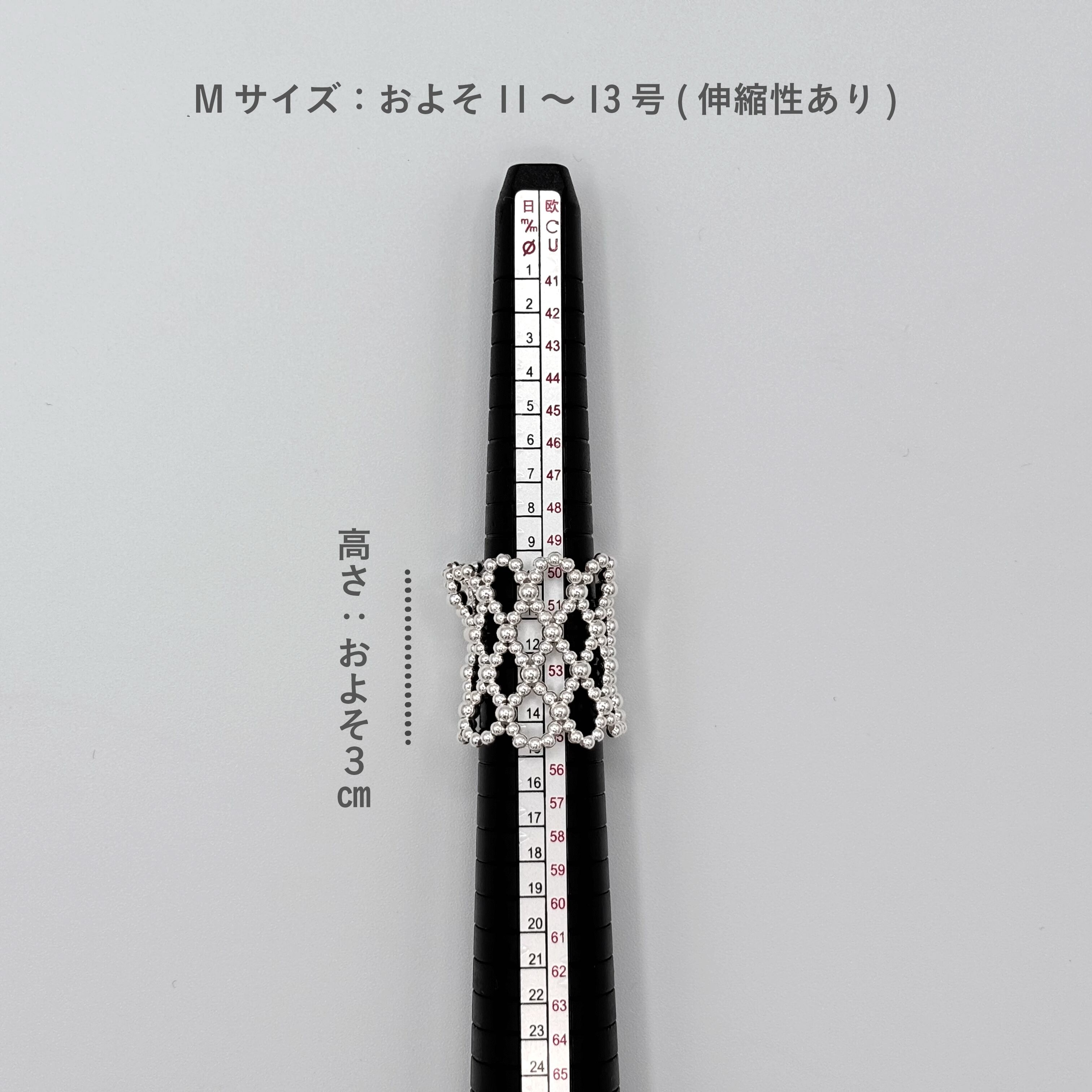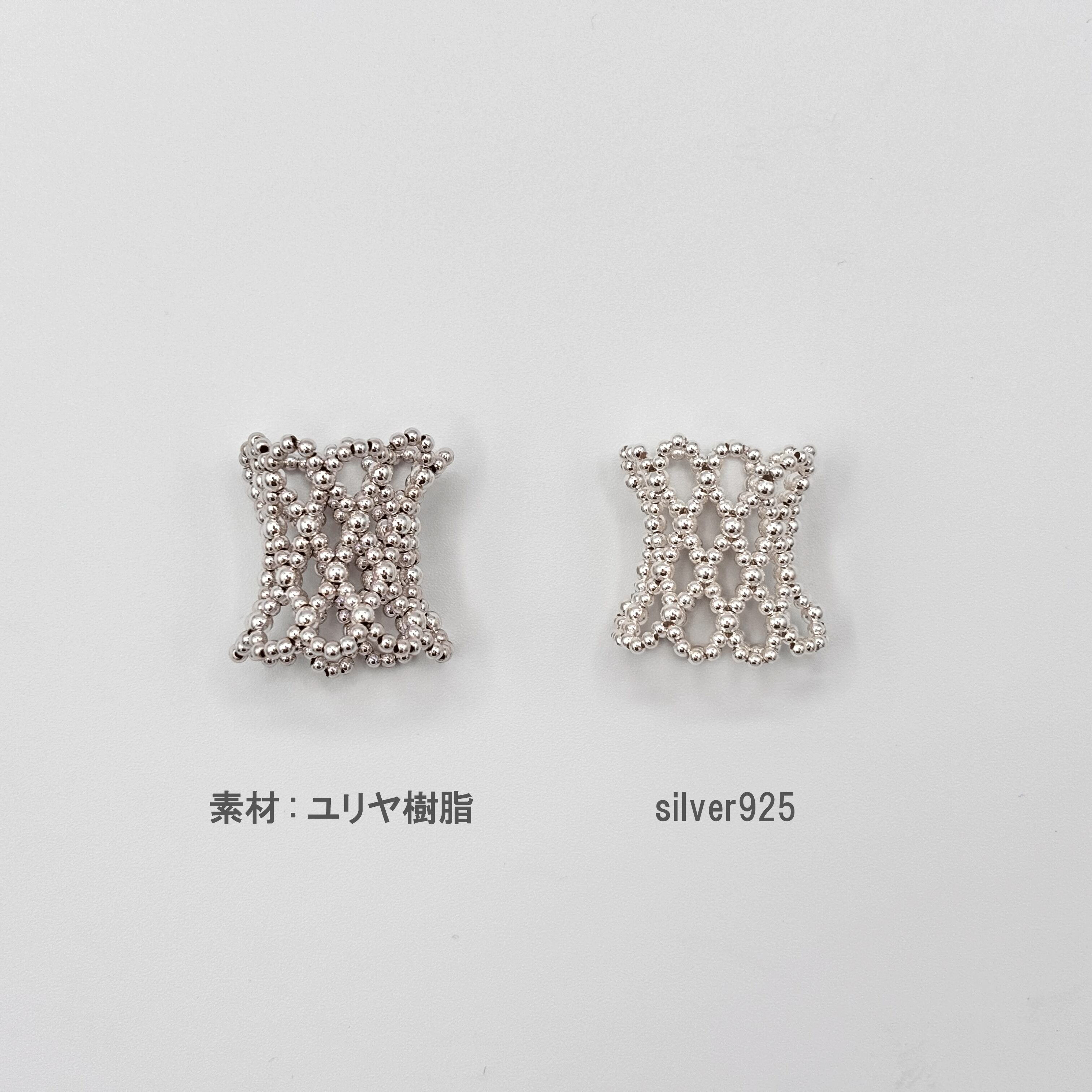 ※ユリヤ樹脂製のものとは、ビーズ一粒ずつの大きさや重さが異なるため、リングのサイズがわずかに違います。
