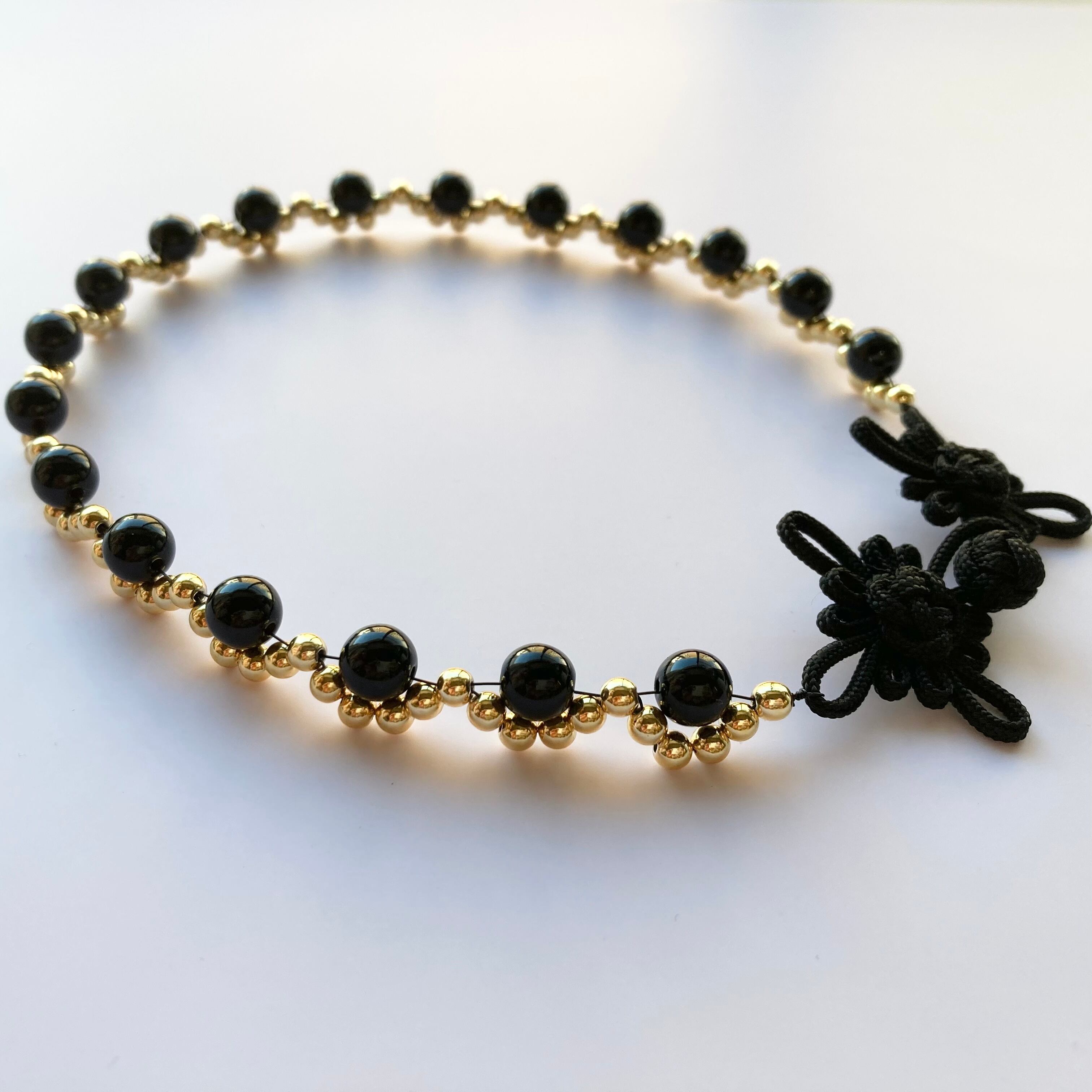 チャイナボタンを留め具に、ビーズをレース状にあしらったチョーカー。