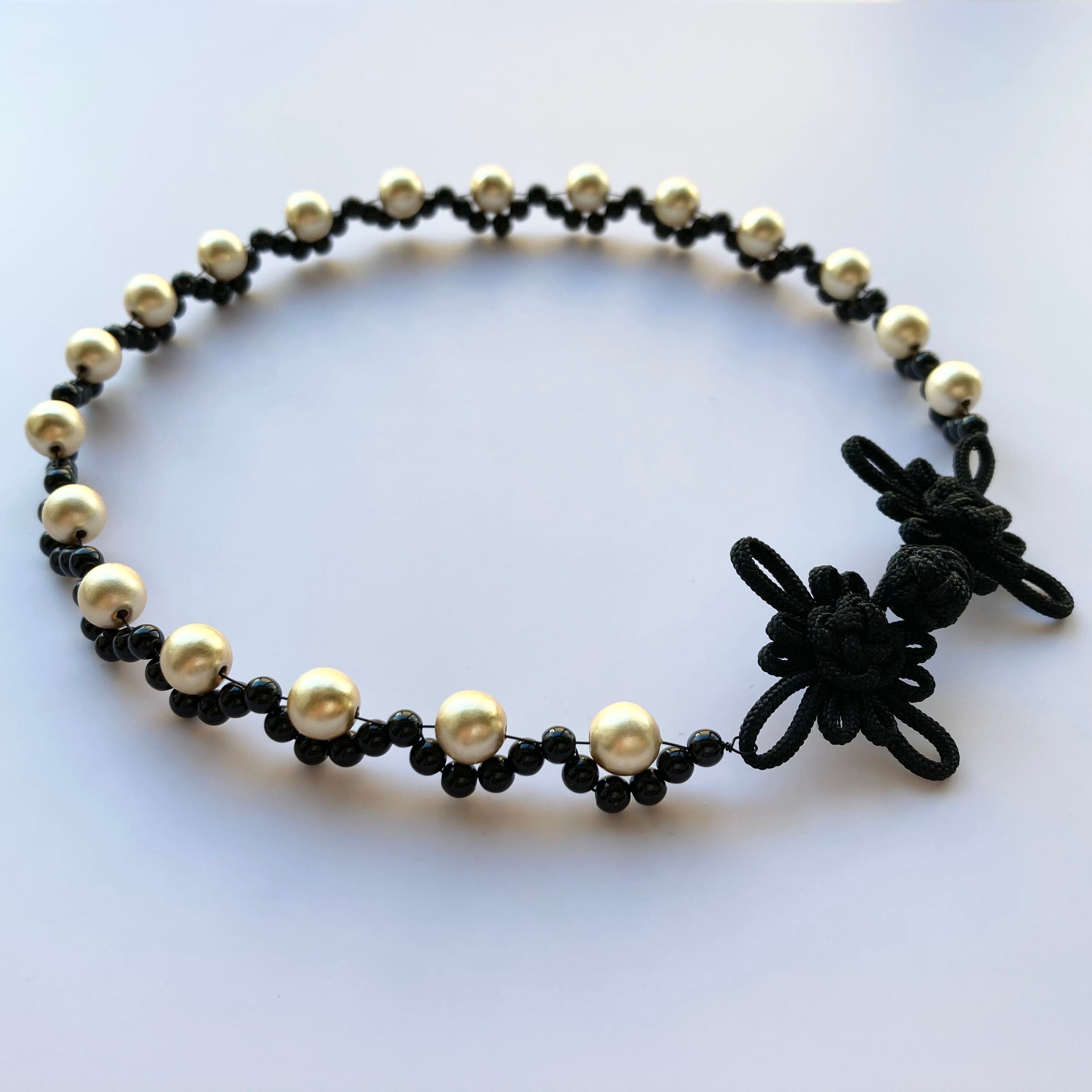 チャイナボタンを留め具に、ビーズをレース状にあしらったチョーカー。