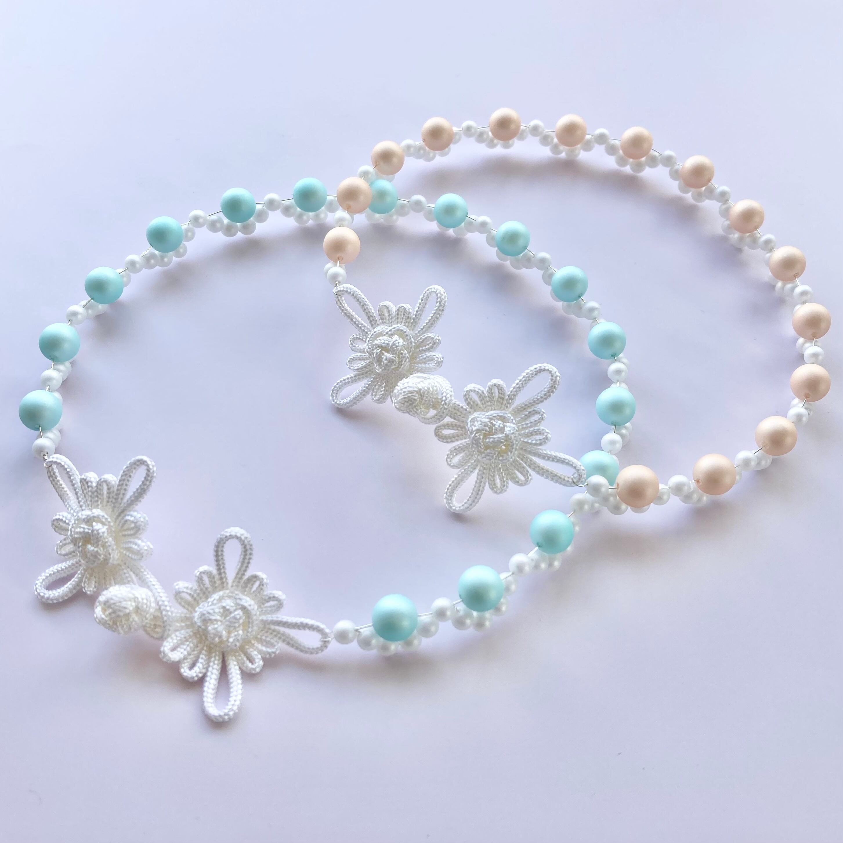 チャイナボタンを留め具に、ビーズをレース状にあしらったチョーカー。