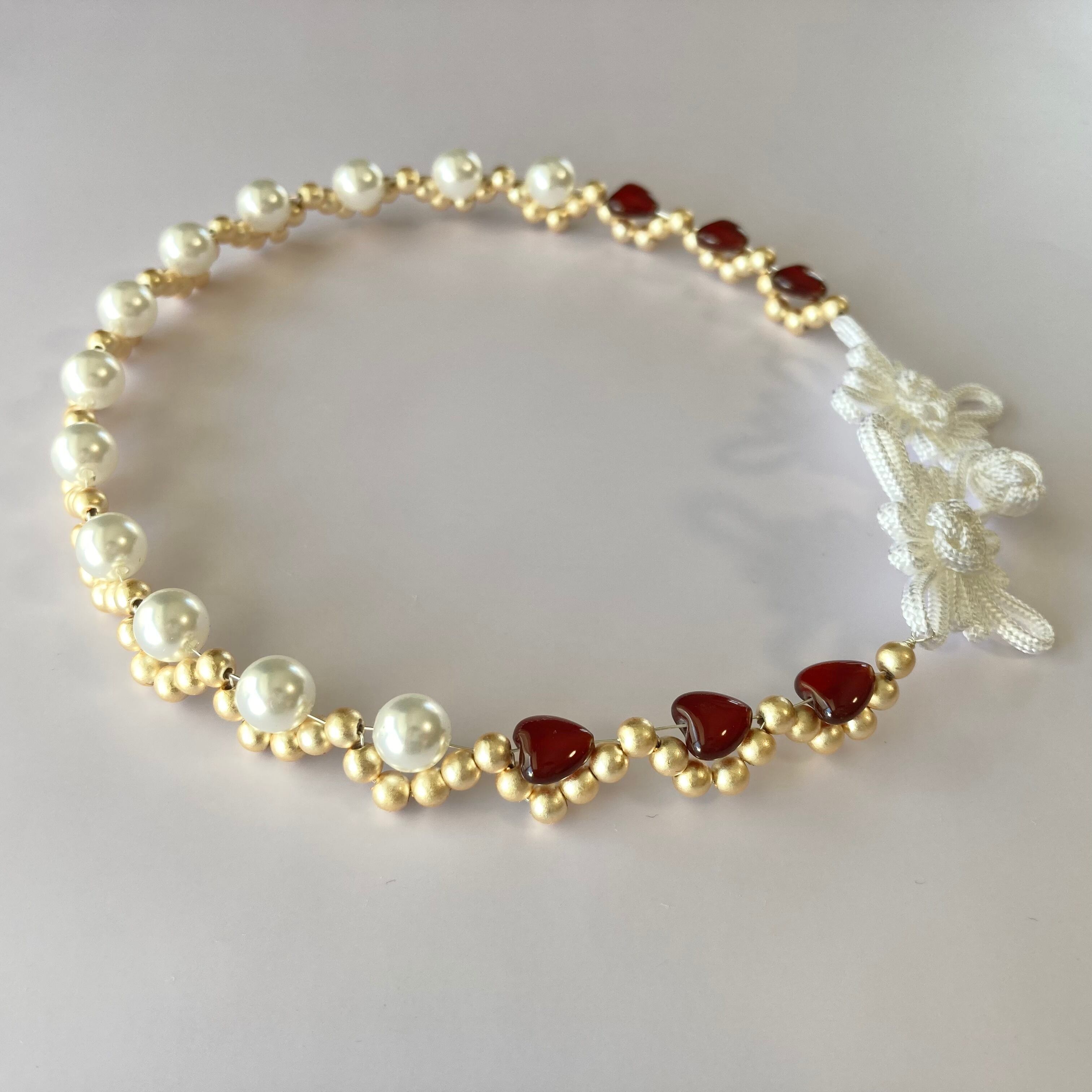 白いチャイナボタン、純白のフェイクパール、つや消しの金色と合わせて、ザ・バレンタイン!のイメージです。