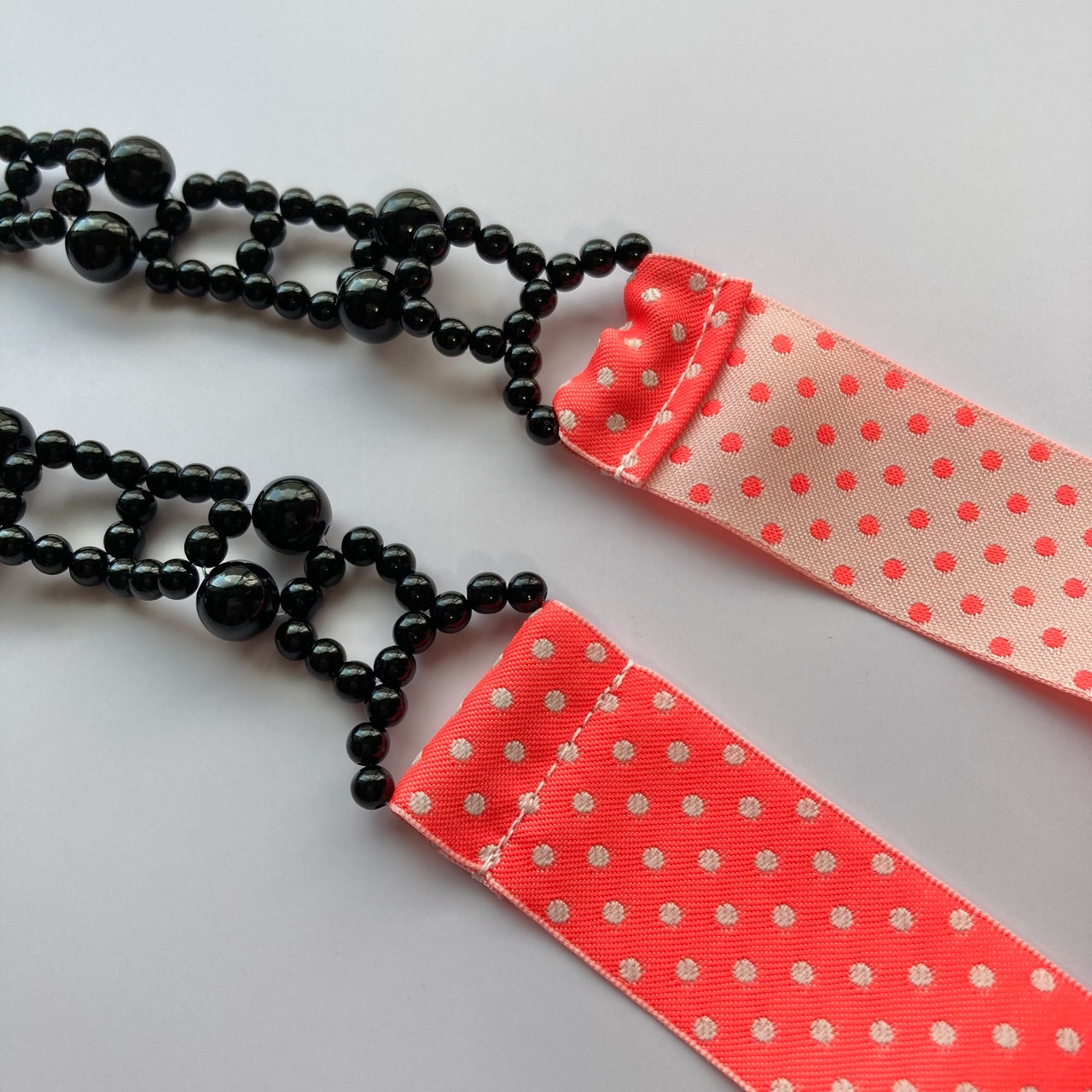 ネオンオレンジのドット柄のリボンは、表裏で色が反転するので、遊べる一品です。