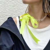 リボンを留め具に、ビーズをレース状に編んだ"ラッピングリボンチョーカー"