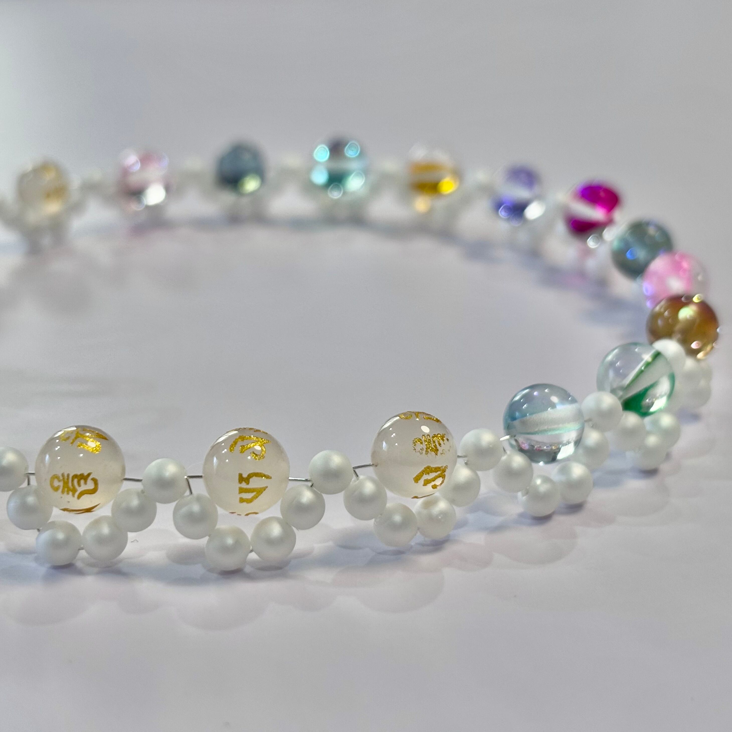 六字真言入りビーズ:ホワイトカルセドニー