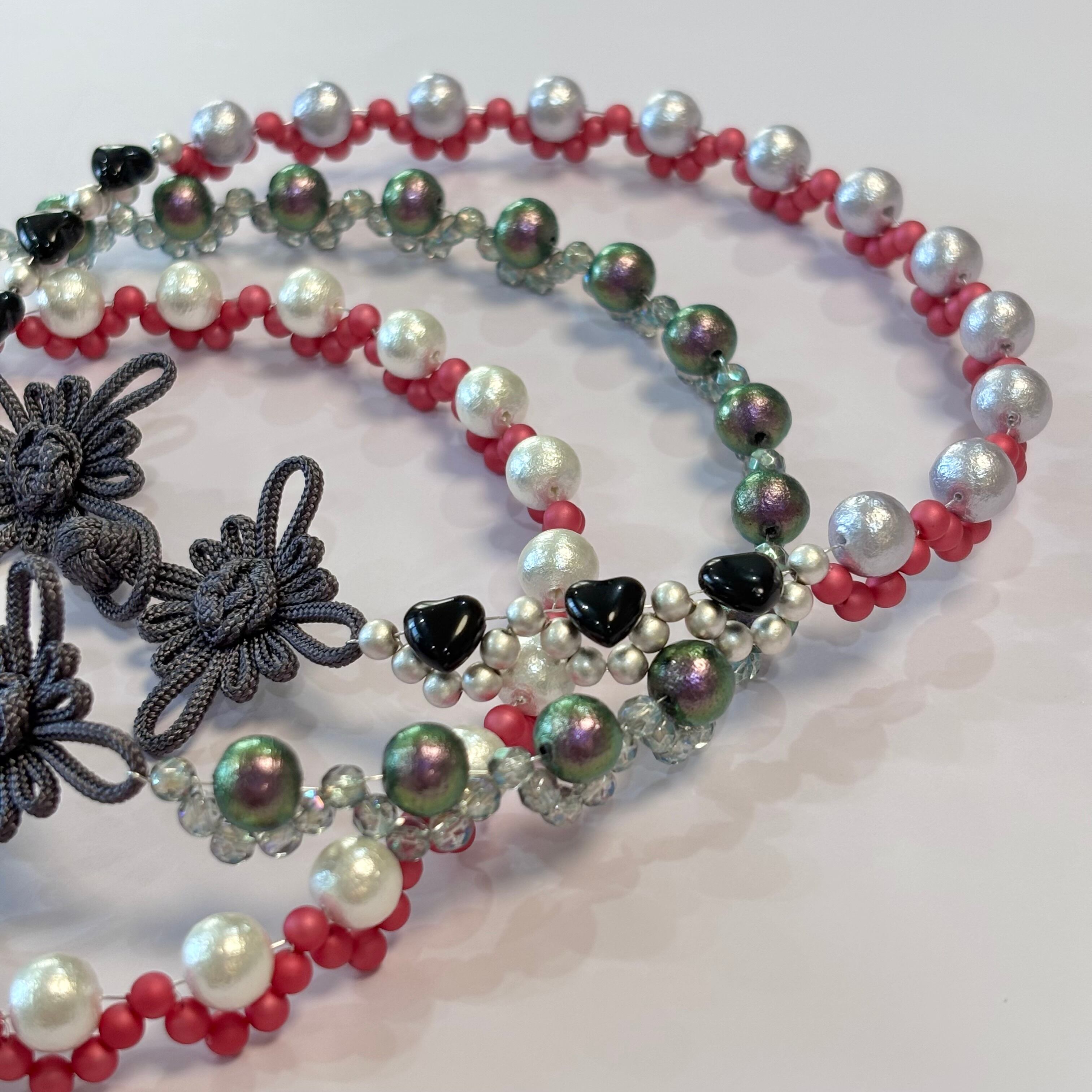 ビーズの厚みがあるため、ご自身の首回りのサイズ+1〜2cmがおすすめです。
